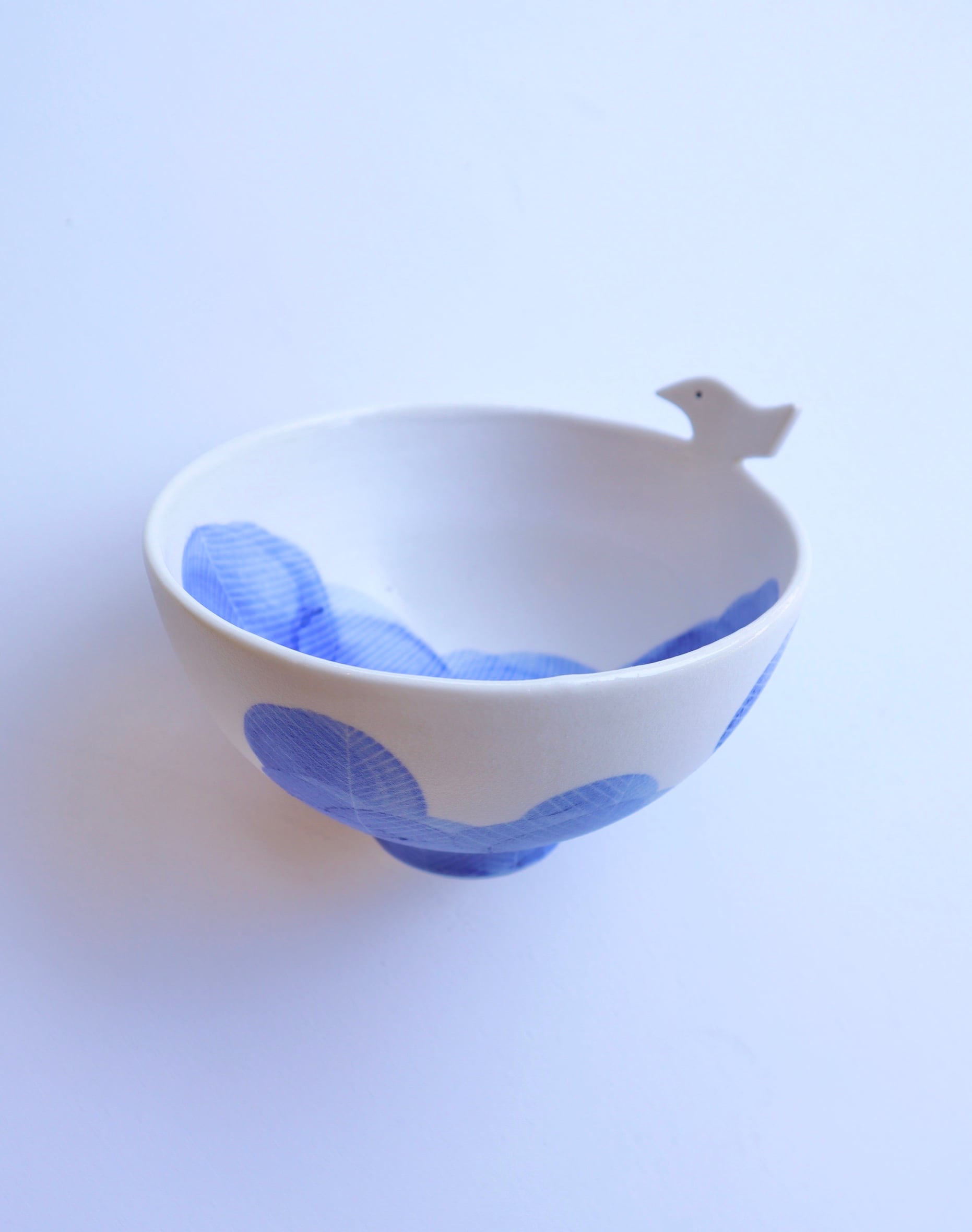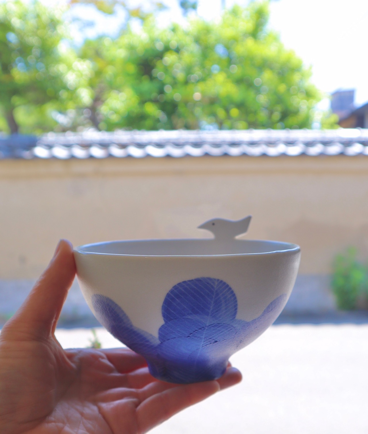 ふちに鳥がある、ボウルです。「ふちどり」の大きいサイズです。小丼ぐらいの大きさです。