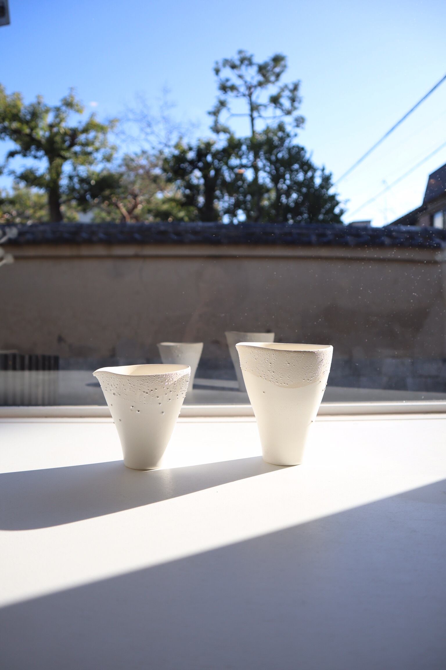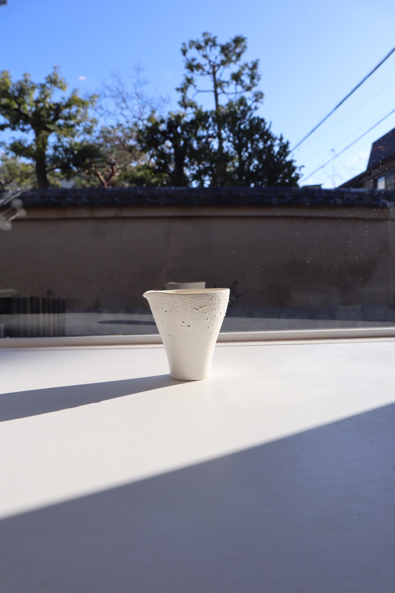 水切れがよい形となっておりますので、液だれはしません。同じシリーズの「gin drop cup」があります。片口とカップをお揃いでお使い頂くこともできます。花器としてもお使いいただけます。